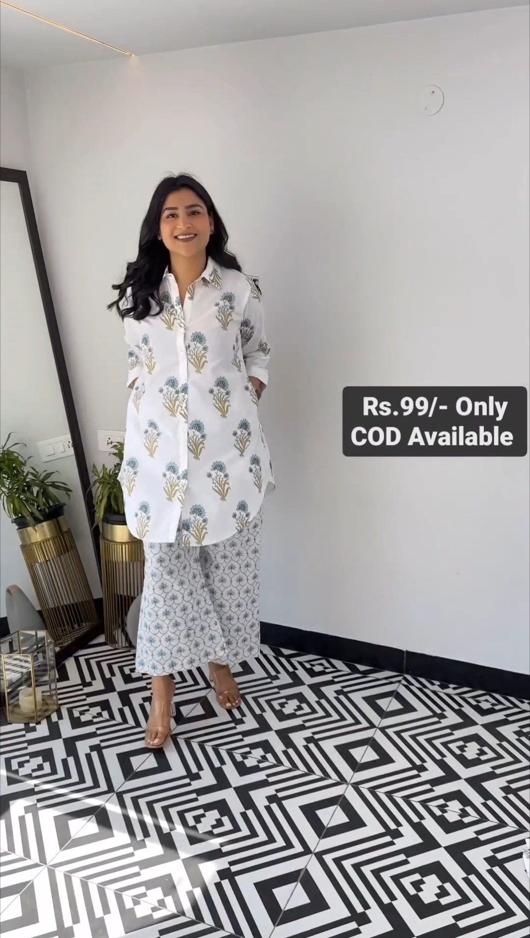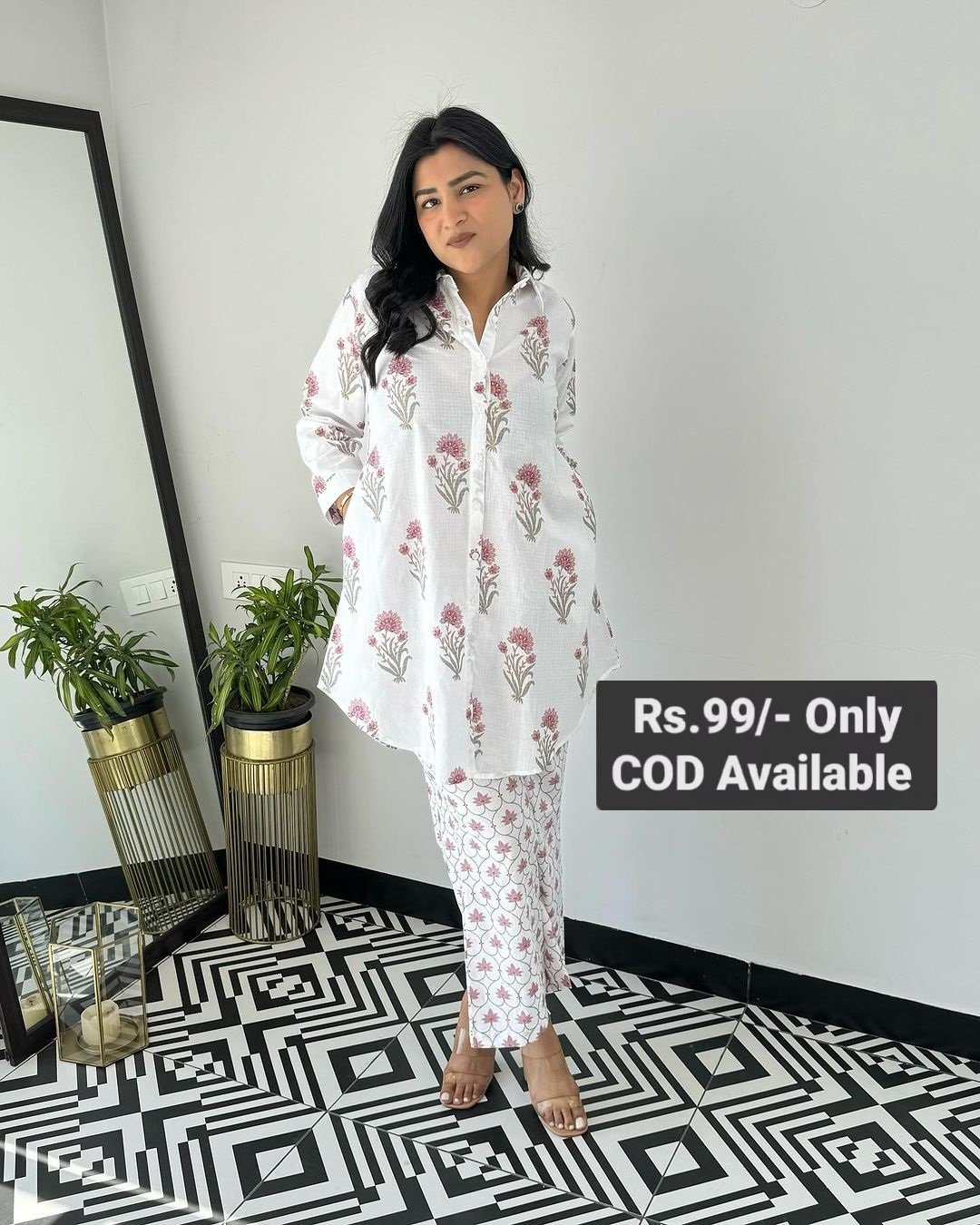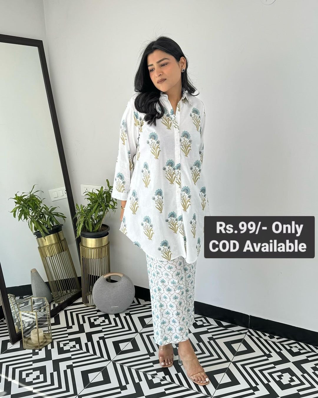 Be the first to review “White Hand Block Print Mughal short cotton cord set best for summer”